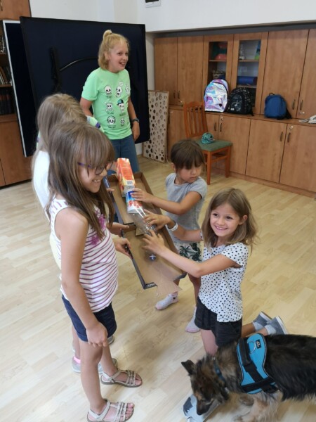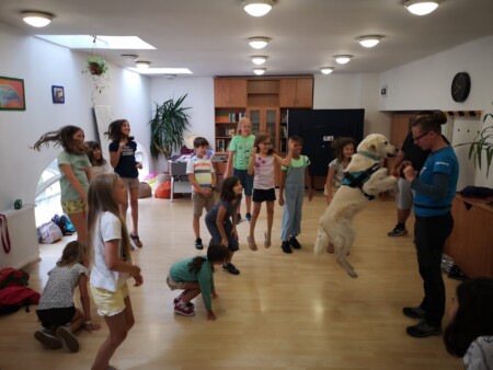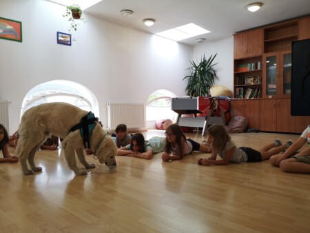 A program ennek megfelelően lett kialakítva, így a hét folyamán a gyerekek életének szerves része lett Winter és Loki a két segítő kutya, akit kiképzőjükkel, Sipos Mónikával vettek részt több nap is a táborban. A kutyák segítségével a gyerekek izgalmas és játékos feladatokon vehettek részt miközben az izgalom, hogy ott van mellettük két kutya még motiváltabbá tette őket és sorra oldották meg a kitalált feladatokat.