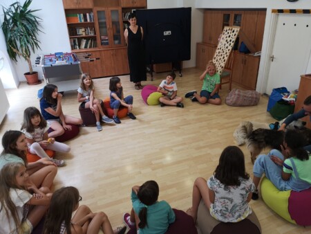 A hét folyamán alkalmunk volt Heinczinger Lilla gyermekpszichológussal egy mesepedagógiai foglalkozáson is részt venni, ahol a gyerekek a mese meghallgatása után együtt dolgozták fel és értelmezték a mese mondanivalóját.